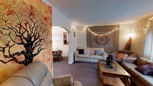 This four-bedroom house has off-street parking and on-site laundry and is close to downtown and both colleges.
